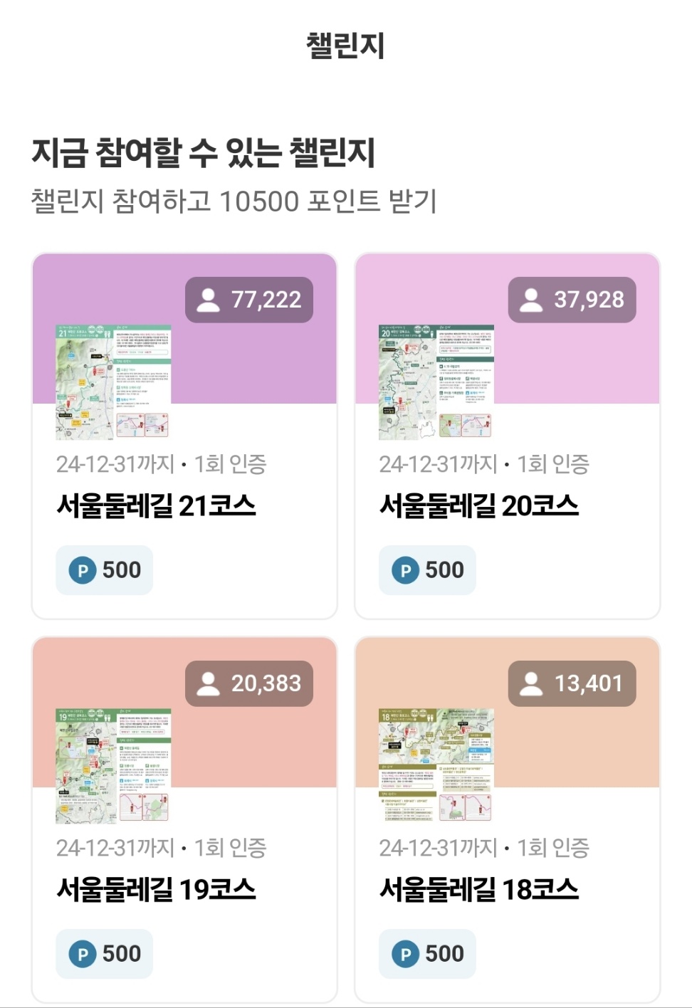 서울 둘레길 코스를 돌고 인증을 받으면 포인트를 주기도 한다