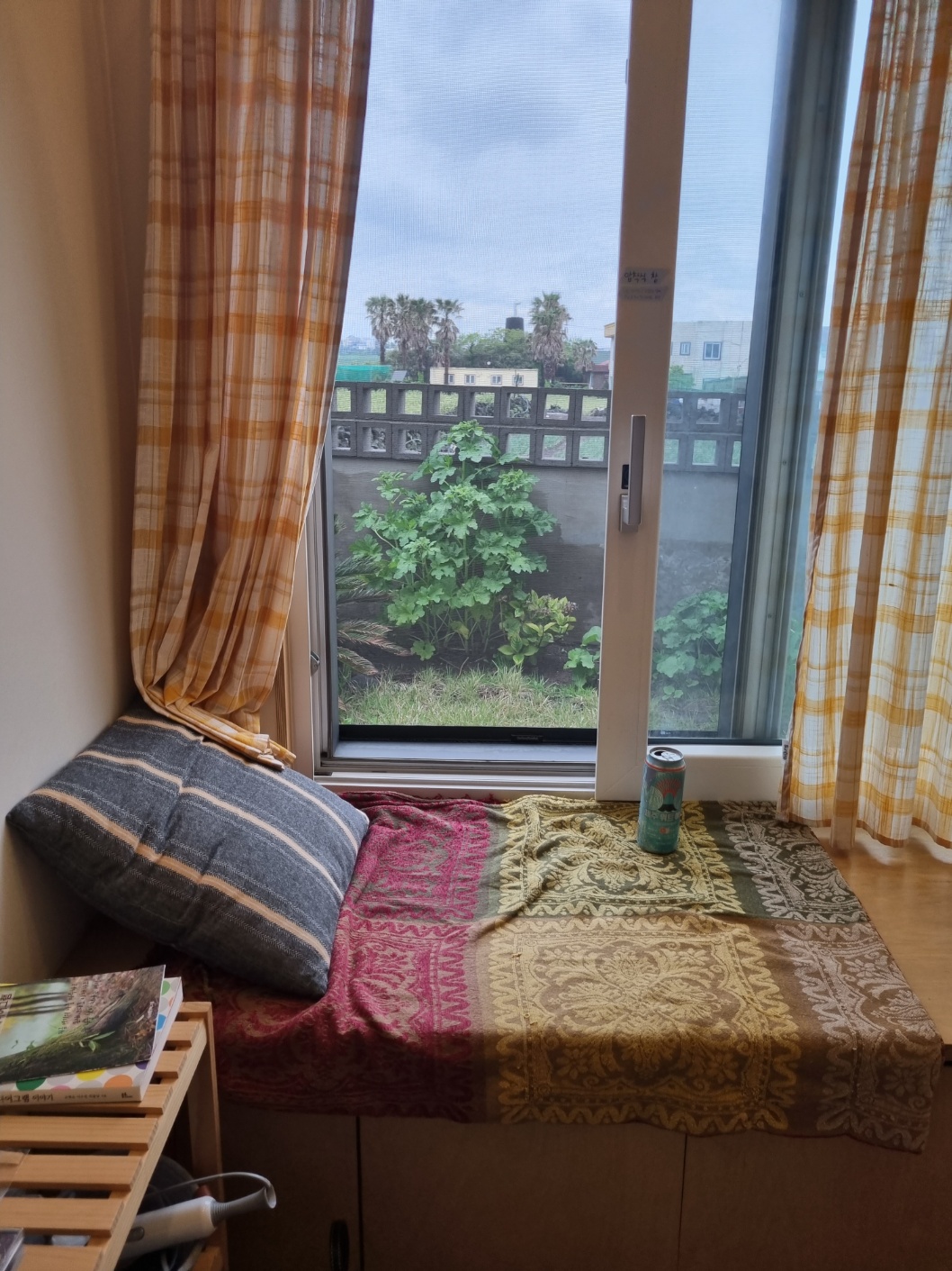 베란다에서 전망을 볼 수 있는 공간이 있었는데 여행 둘째 날부터 비바람이 심해져서