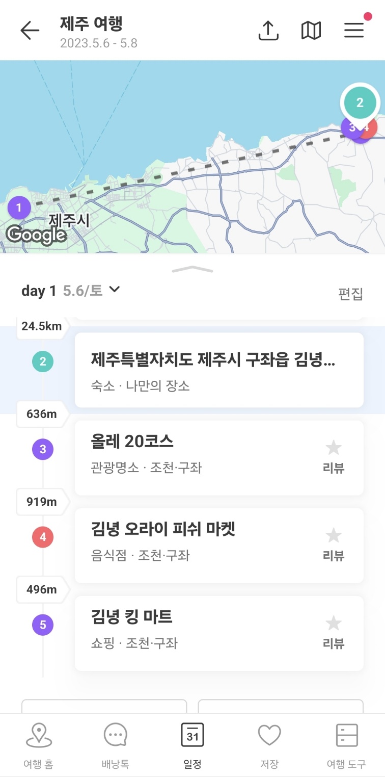 1. 여행 동선을 지도에 표시할 수 있는 점 (여행 스팟의 순서도 자유롭게 바꿀 수 있다)